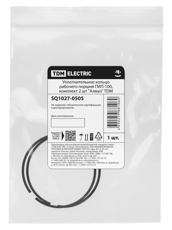 Уплотнительное кольцо рабочего поршня ГМП-100, комплект 2 шт «Алмаз» TDM