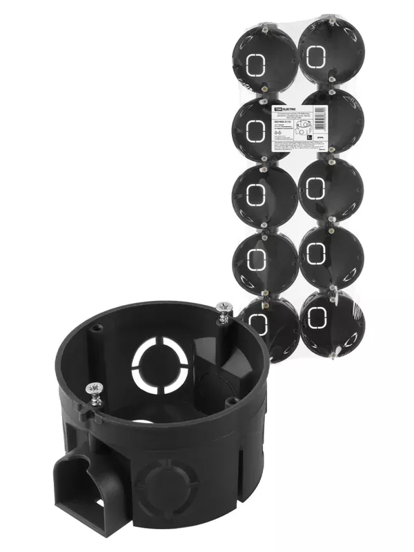 / Установочная коробка СП D68х42мм, саморезы, стыковочные узлы, черная, IP20, (10 шт) TDM