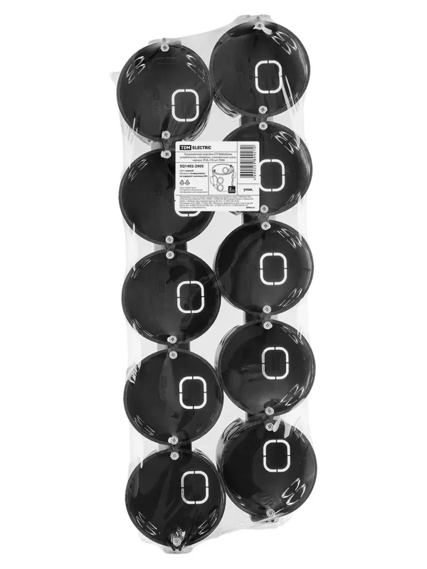 / Установочная коробка СП D68х62мм, углубленная, саморезы, стык. узлы, черная, IP20, (10 шт) TDM