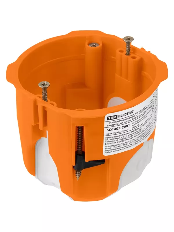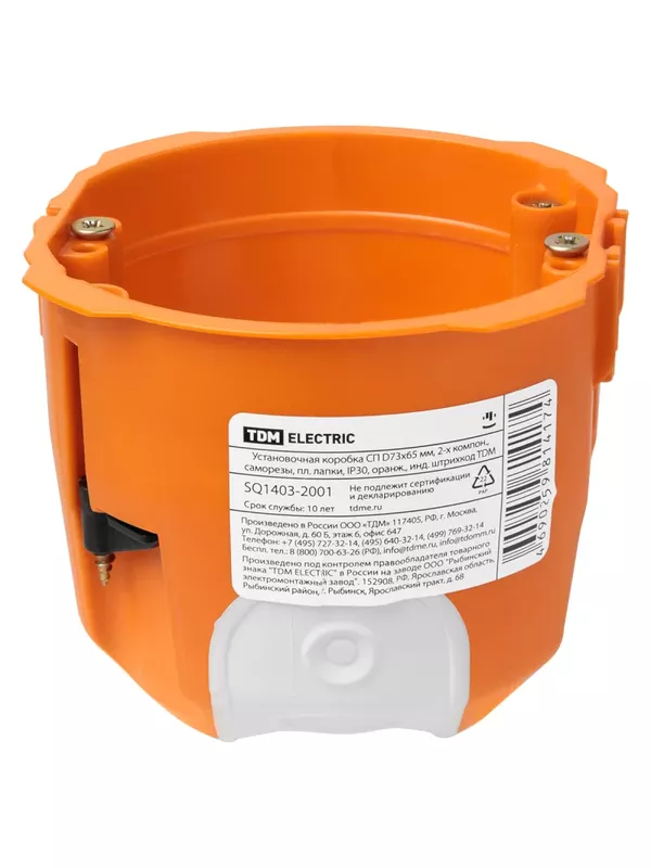 Установочная коробка СП D73х65 мм, 2-х компон., саморезы, пл. лапки, IP30, оранж., инд. штрихкод TDM