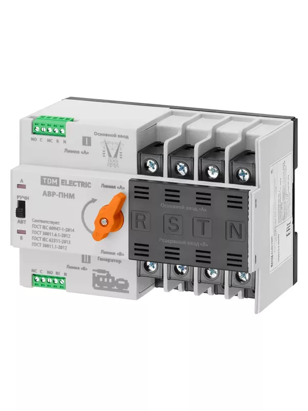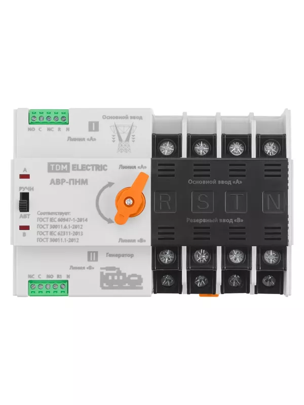 Устройство автоматического ввода резерва модульное АВР-ПНM 4P 100А 380В на DIN-рейку TDM