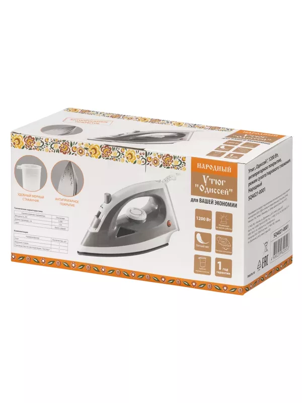/ Утюг «Одиссей», 1200 Вт, антипригарное покрытие, режим сухого/парового глажения, Народный