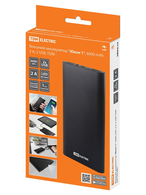 / Внешний аккумулятор «Юкон 1», 6000 mAh, 2 А, 2 USB, TDM