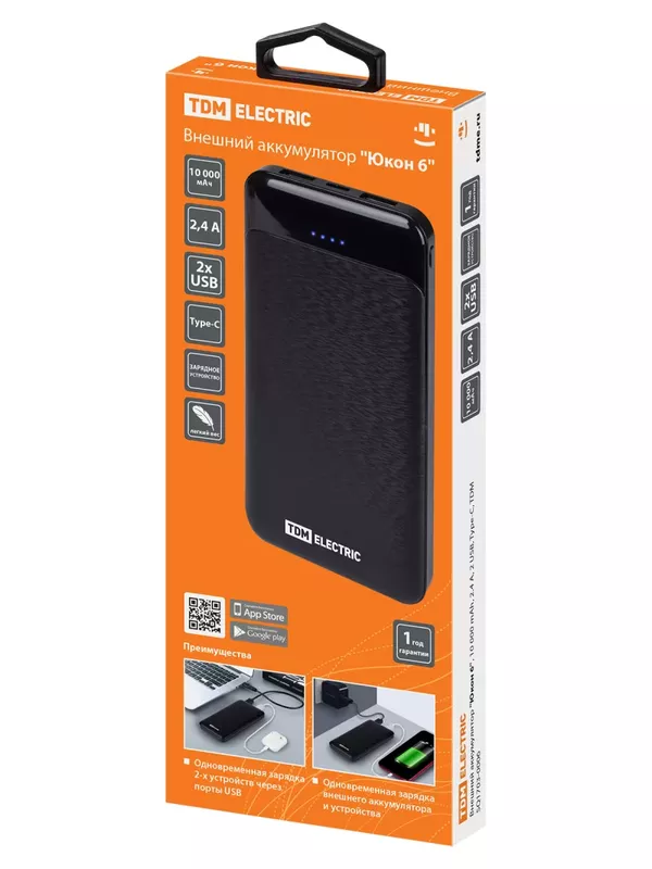 Внешний аккумулятор «Юкон 6», 10 000 mAh, 2.4 А, 2 USB, Type-C, TDM