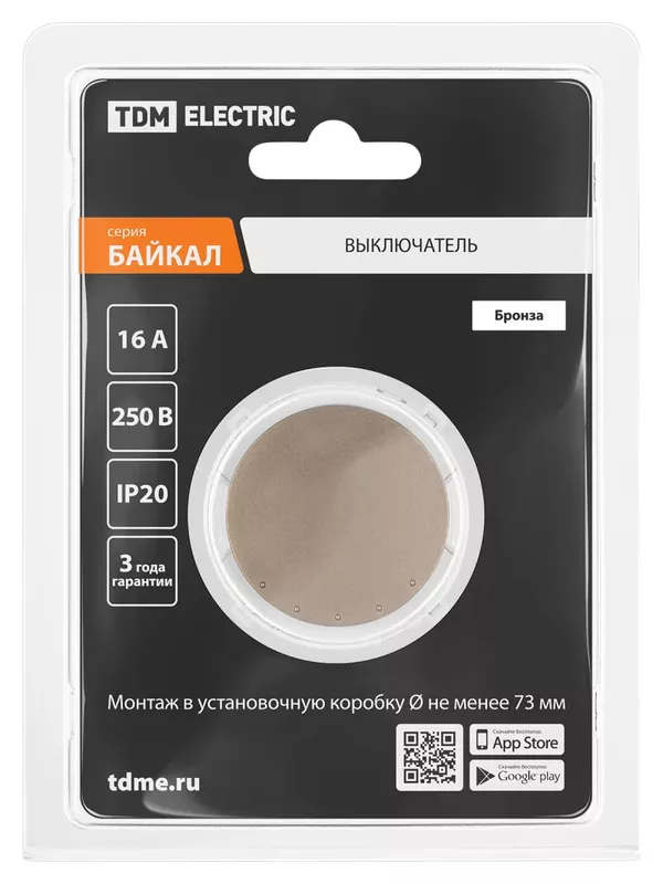 / Выключатель 1-кл. 16А 250В проходной бронза, «Байкал» TDM