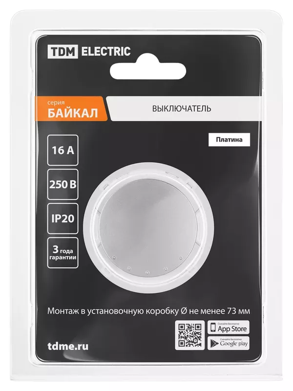 / Выключатель 1-кл. 16А 250В проходной платина, «Байкал» TDM