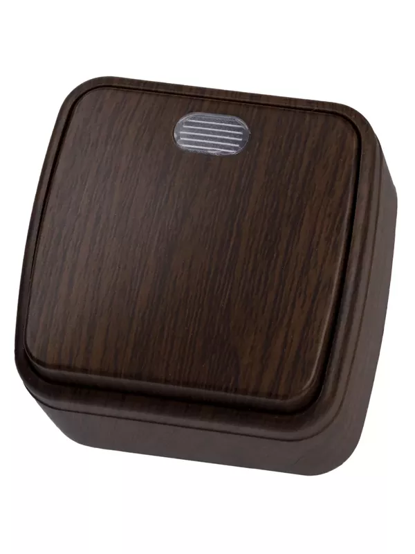 / Выключатель 1-кл. открытой установки с подсветкой IP20 10А, венге «Дача» Народная