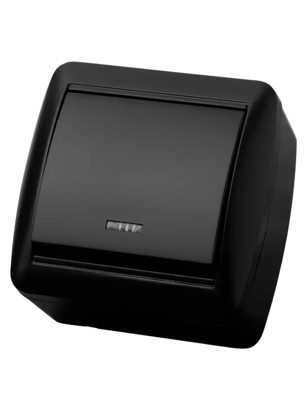 / Выключатель 1-кл. открытой установки с подсветкой IP44 10А графит «Селигер» TDM