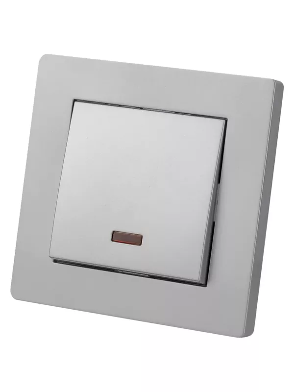 / Выключатель 1 кл. с подсветкой 10А серебр. металлик «Сенеж» TDM