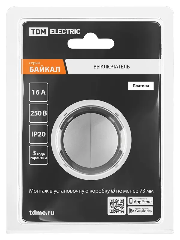 Выключатель 2-кл. 16А 250В кнопочный механизм платина, «Байкал» TDM