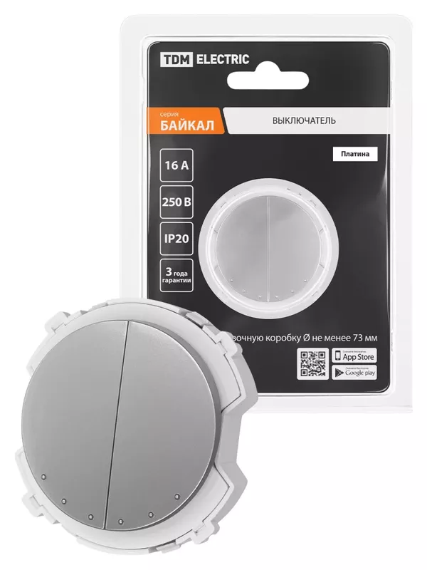 Выключатель 2-кл. 16А 250В проходной платина, «Байкал» TDM