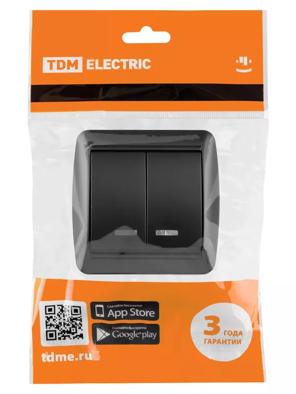 / Выключатель 2-кл. открытой установки с подсветкой IP44 10А графит «Селигер» TDM