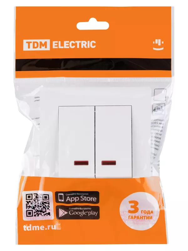 Выключатель 2 кл. с подсветкой 10А белый «Сенеж» TDM