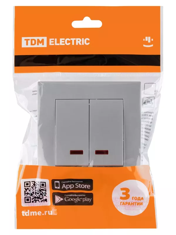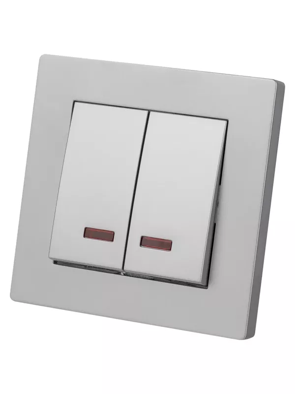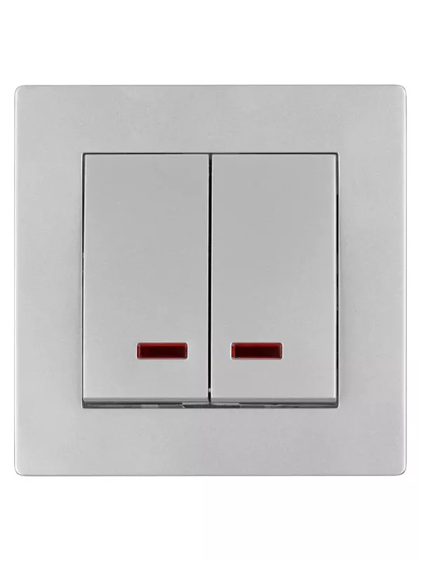 / Выключатель 2 кл. с подсветкой 10А серебр. металлик «Сенеж» TDM