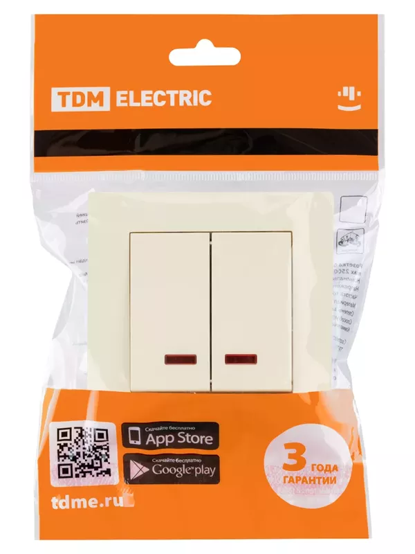 / Выключатель 2 кл. с подсветкой 10А сл. кость «Сенеж» TDM