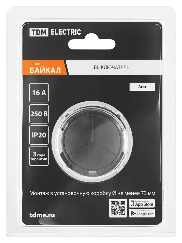 Выключатель 3-кл. 16А 250В проходной кнопочный механизм агат, «Байкал» TDM