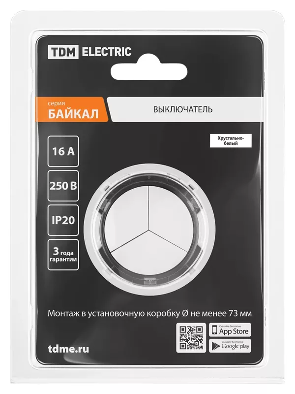 Выключатель 3-кл. 16А 250В проходной кнопочный механизм белый, «Байкал» TDM