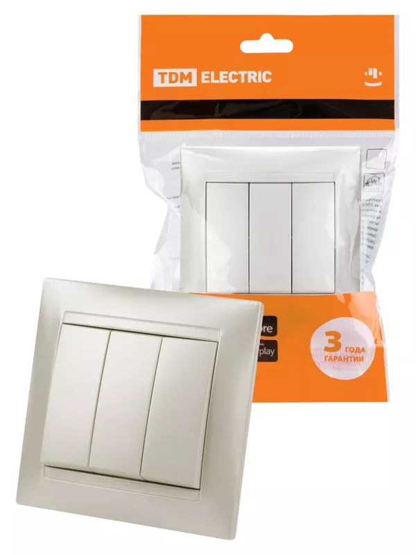 Выключатель 3-х кл. 10А перламутр «Лама» TDM