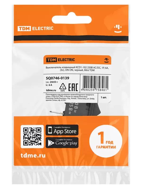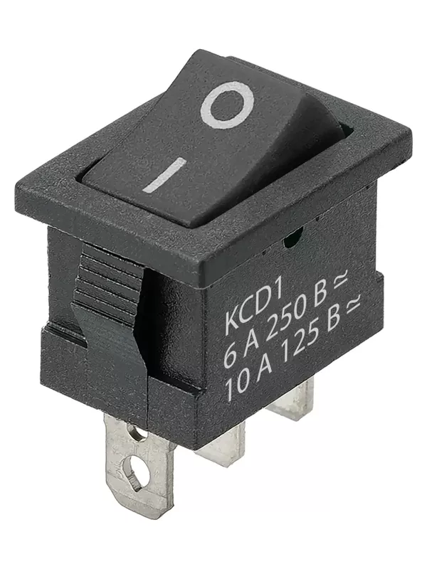 / Выключатель клавишный KCD1-102 250В AC/DC, 1P, 6А, (3с), ON-ON, черный, Mini TDM