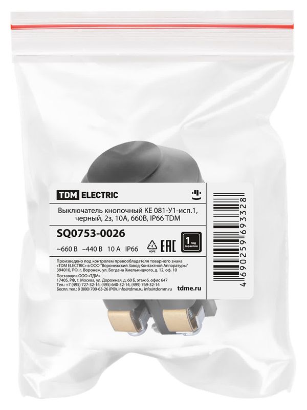 / Выключатель кнопочный КЕ 081-У1-исп.1, черный, 2з, 10A, 660B, IP66 TDM