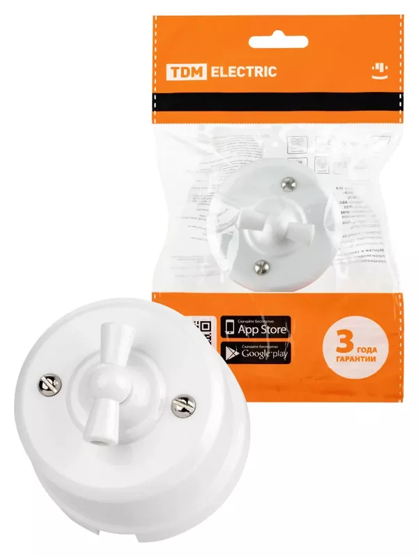 / Выключатель поворотный 2-кл. с ручкой (бантик) 10А белый «Виви» TDM