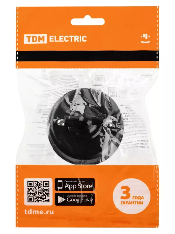 Вилка с/з круглая черная 10А 250В TDM