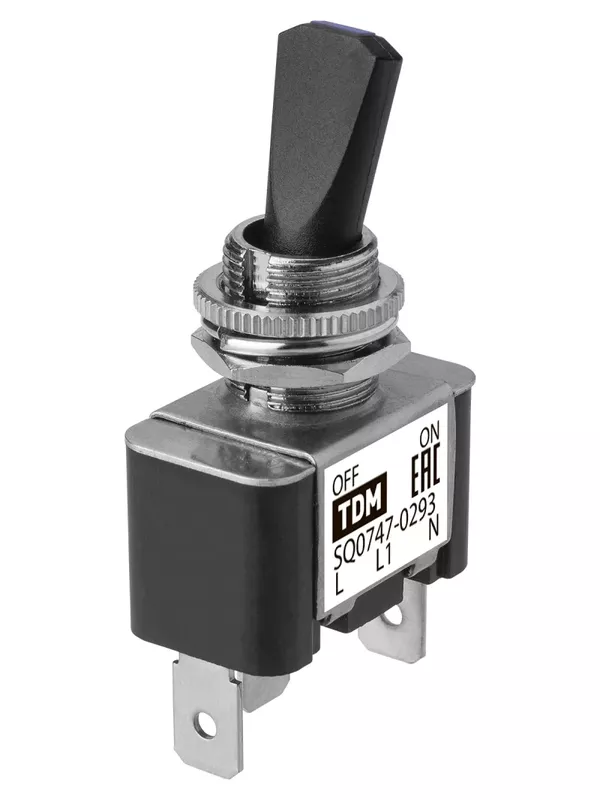 Выключатель-тумблер ASW-07D-2 1P 12В AC/DC 30А (3c) ON-OFF с фиксацией с синей LED подсветкой TDM