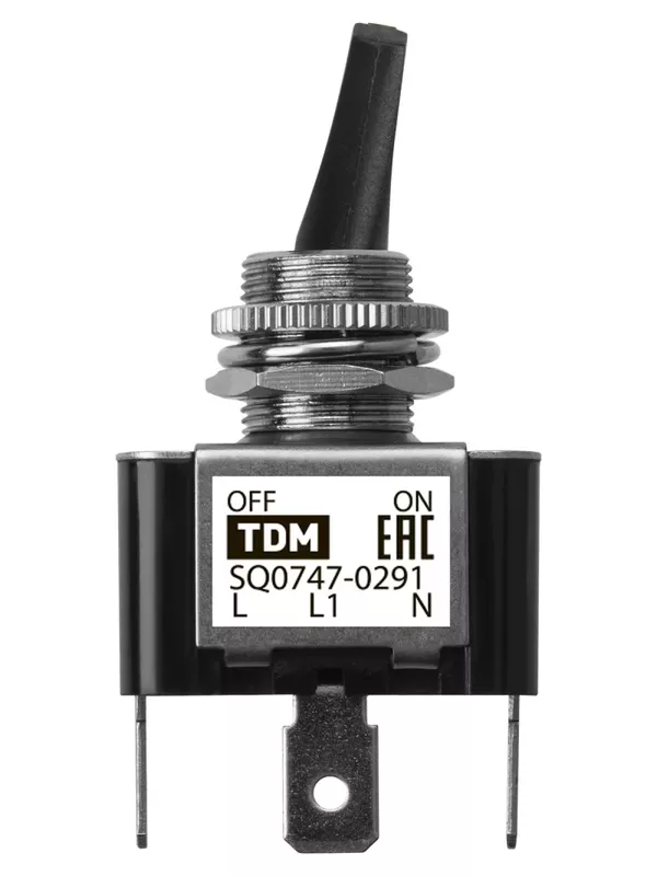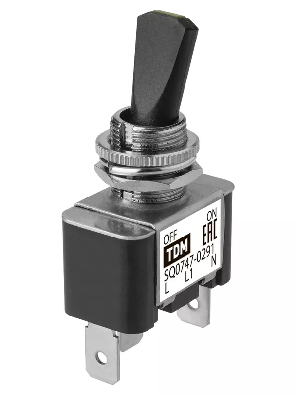 / Выключатель-тумблер ASW-07D-2 1P 12В AC/DC 30А (3c) ON-OFF с фиксацией с зеленой LED подсветкой TDM