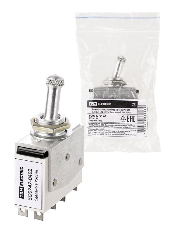 / Выключатель-тумблер ТВ1-4 2P 250 В 5 А (8c) ON-OFF с фиксацией (4з) TDM