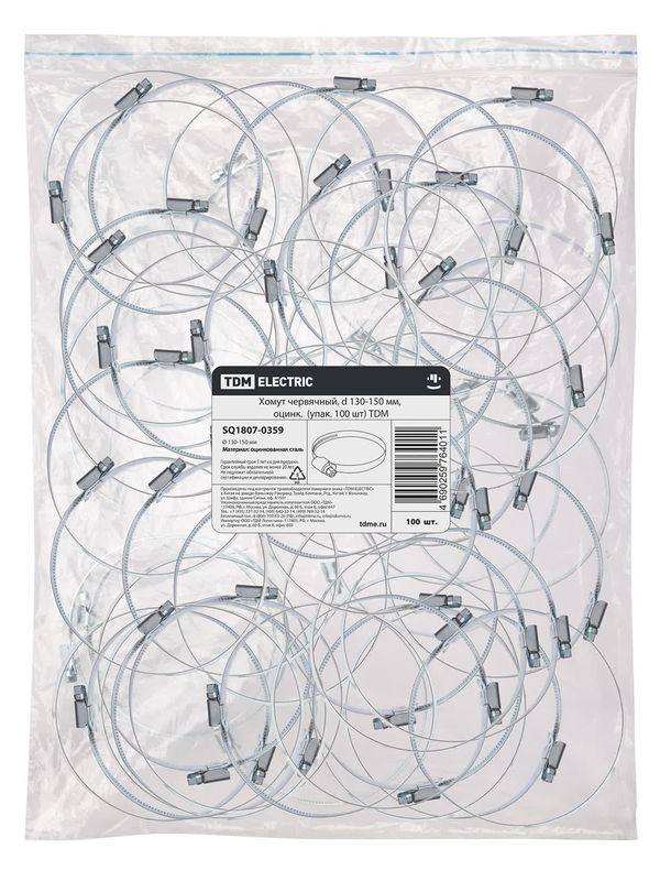 / Хомут червячный, d 130-150 мм, оцинк (упак. 100 шт) TDM