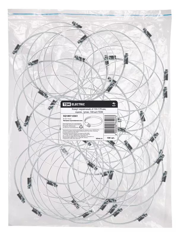 / Хомут червячный, d 150-170 мм, оцинк (упак. 100 шт) TDM
