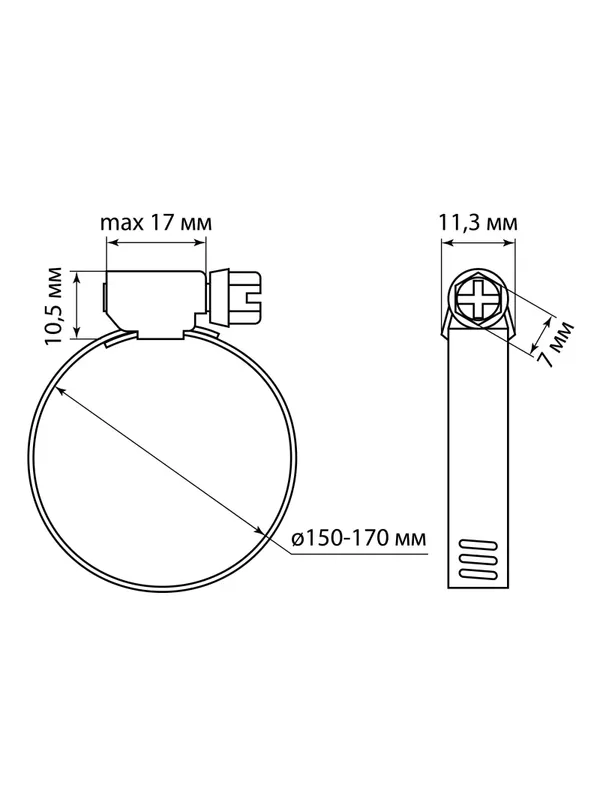 Хомут червячный, d 150-170 мм, оцинк (упак. 100 шт) TDM