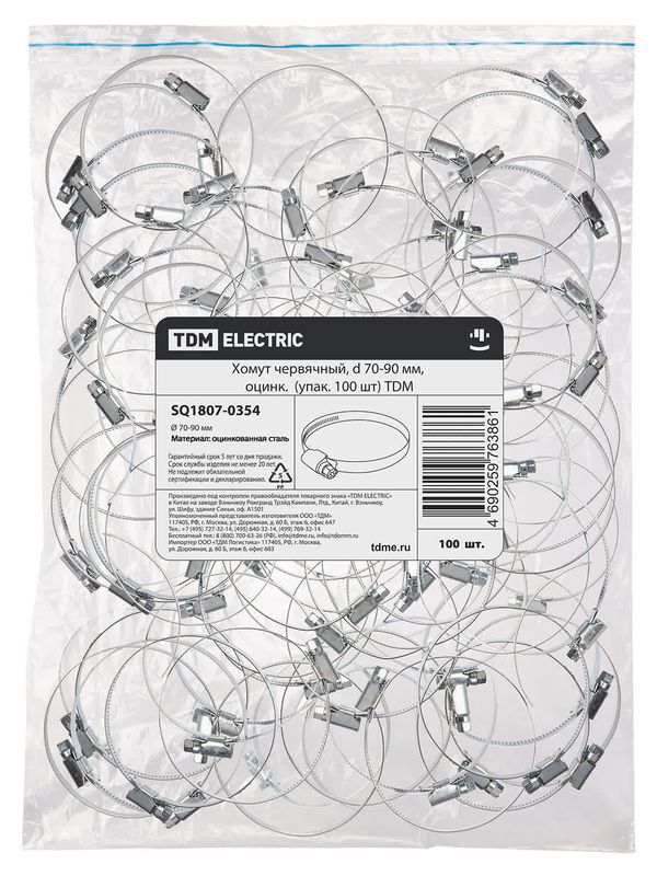 / Хомут червячный, d 70-90 мм, оцинк (упак. 100 шт) TDM