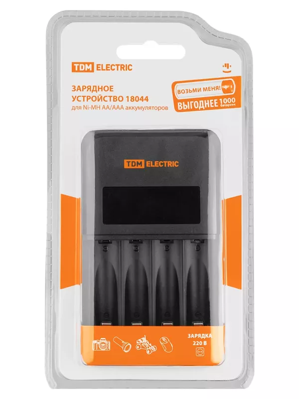 / Зарядное устройство 18044 (1800 mA 4 слота АА/ААА 4 кан.), LCD-экран, 220 В, TDM