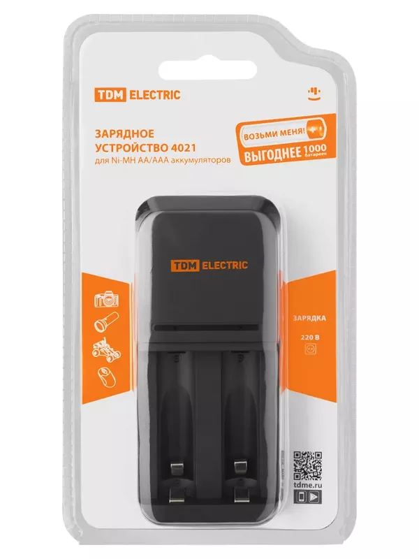 / Зарядное устройство 4021 (400 mA 2 слота АА/ААА 1 кан.), 220 В, TDM