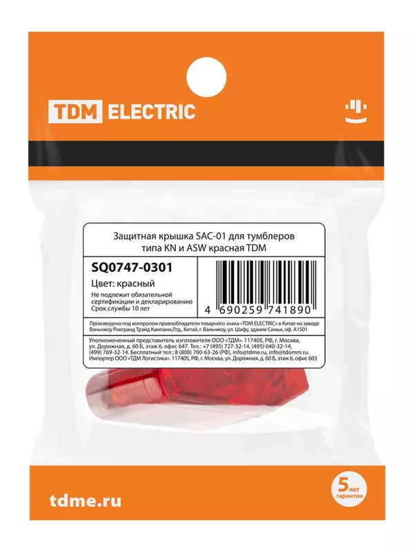 Защитная крышка SAC-01 для тумблеров типа KN и ASW красная TDM