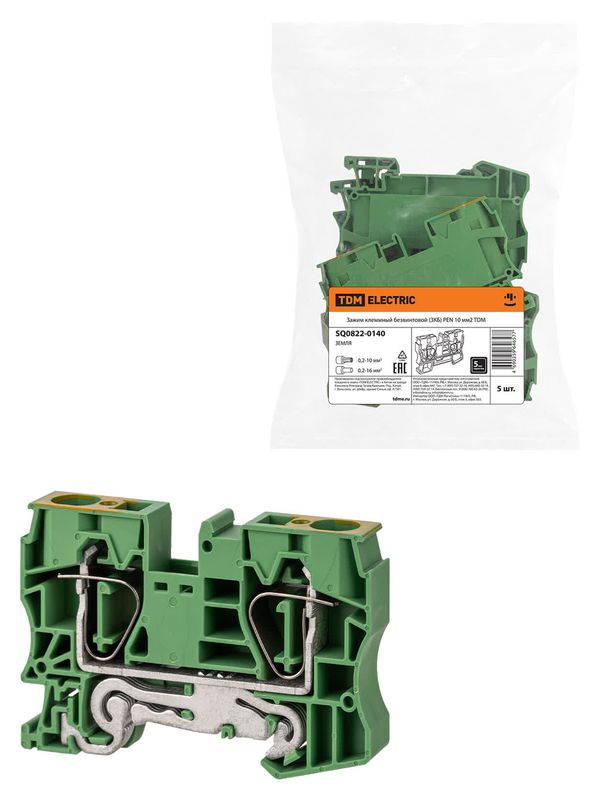Зажим клеммный безвинтовой (ЗКБ) PEN 10мм2 TDM