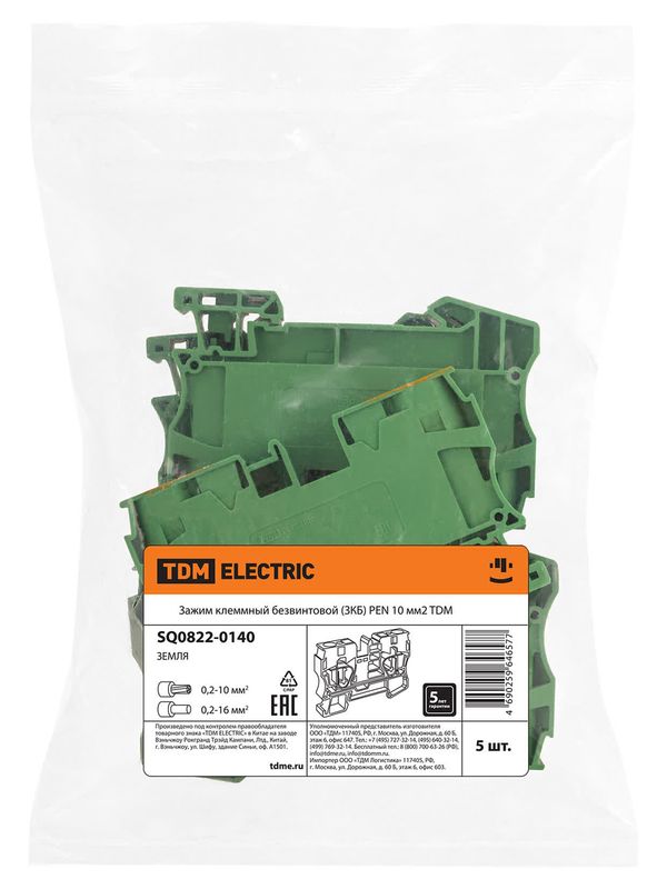 / Зажим клеммный безвинтовой (ЗКБ) PEN 10мм2 TDM
