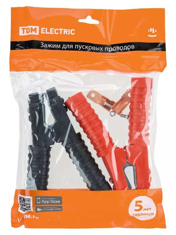 / Зажим «крокодил» для пусковых проводов 500 А в изоляции (1 красный + 1 черный) TDM