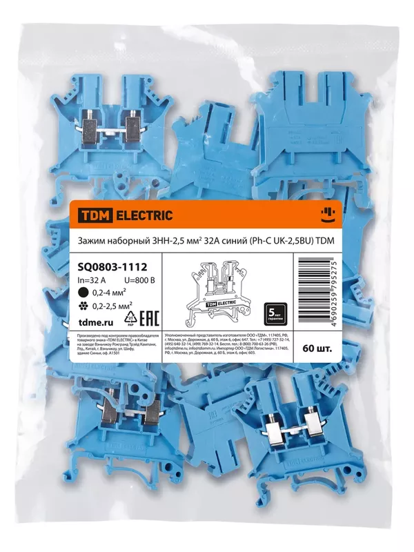 / Зажим наборный ЗНН-2,5мм2 32А синий (Ph-C UK-2,5BU) TDM